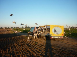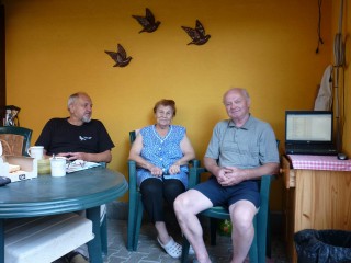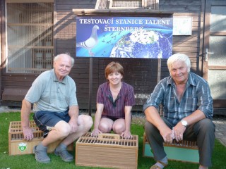 A u holubníků se diváci dočkali hromadného doletu! Zleva Petr David, maminka Ludmila Matušková, Mikuláš Varga. |